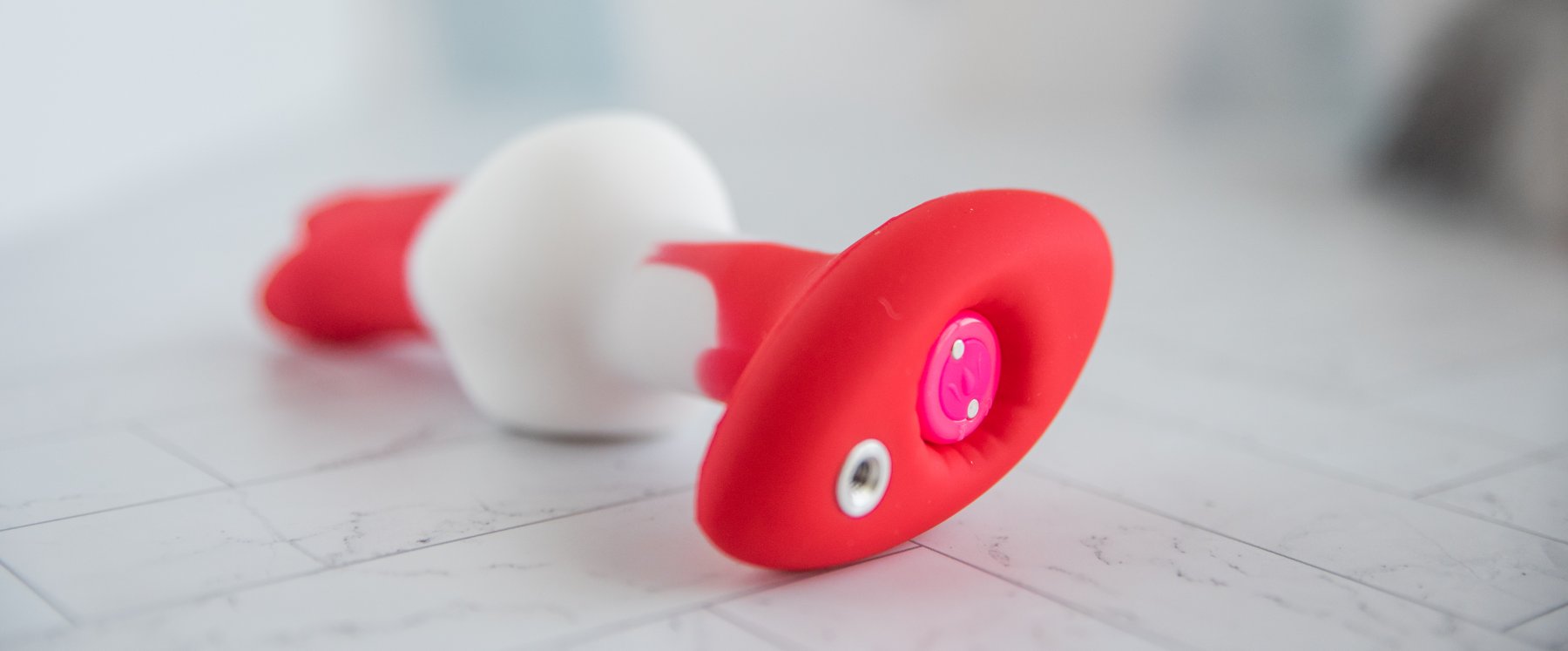 I would take all marketing photos for the Juliet Toys Echo with a grain of salt, and do not purchase if you’re attached to any specific visual look of the Echo. The tail we received looks different, and the bullet vibrator that came with ours also looks entirely different. The Echo plug itself, however, features the same red and white design as in the marketing photos.